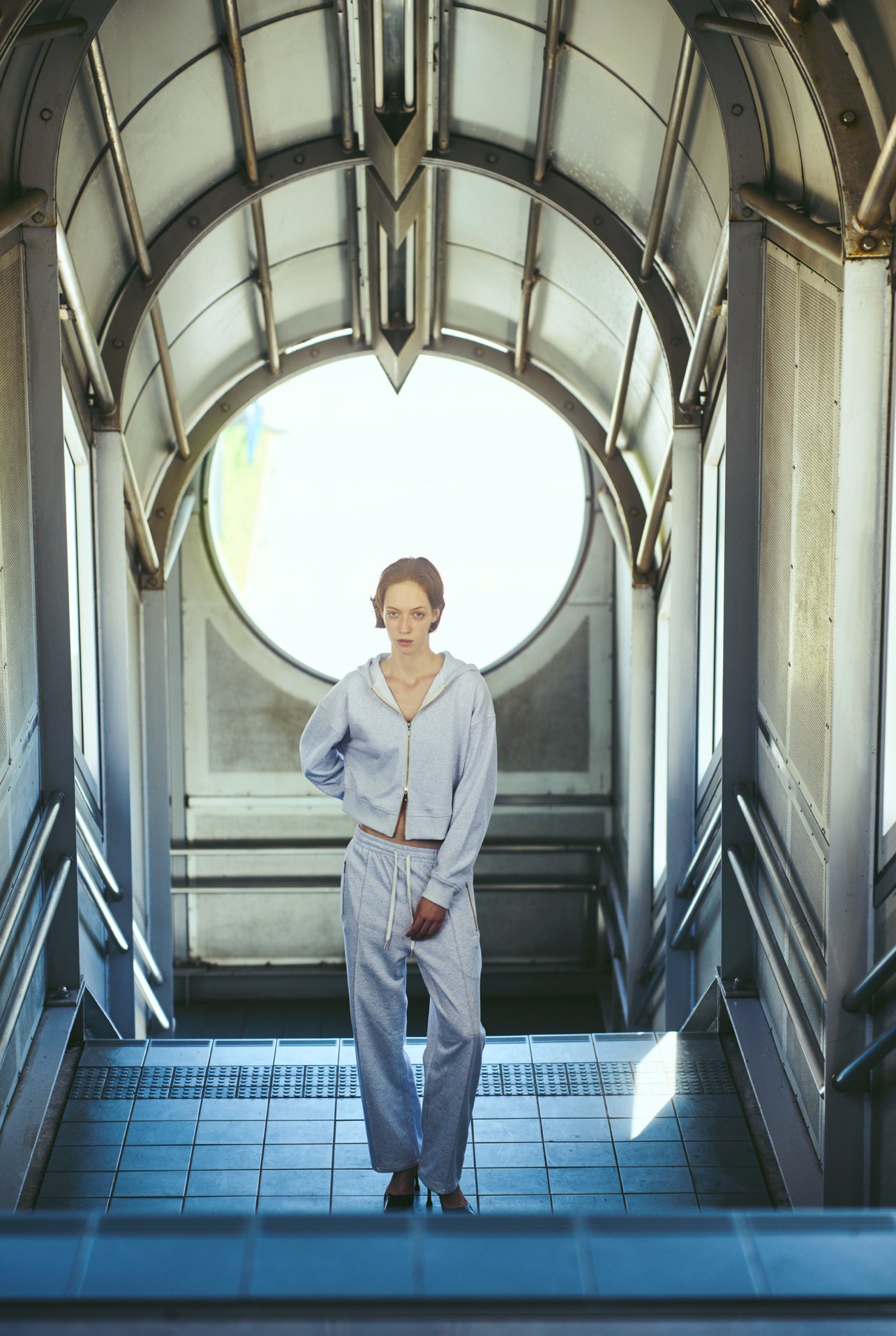 スタイリングの幅を広げるため、クロップド丈+ダブルジップで制作しています。秋から春先までご着用頂けるよう、カラーはアッシュグレーとブラックのベーシックな2色展開に。