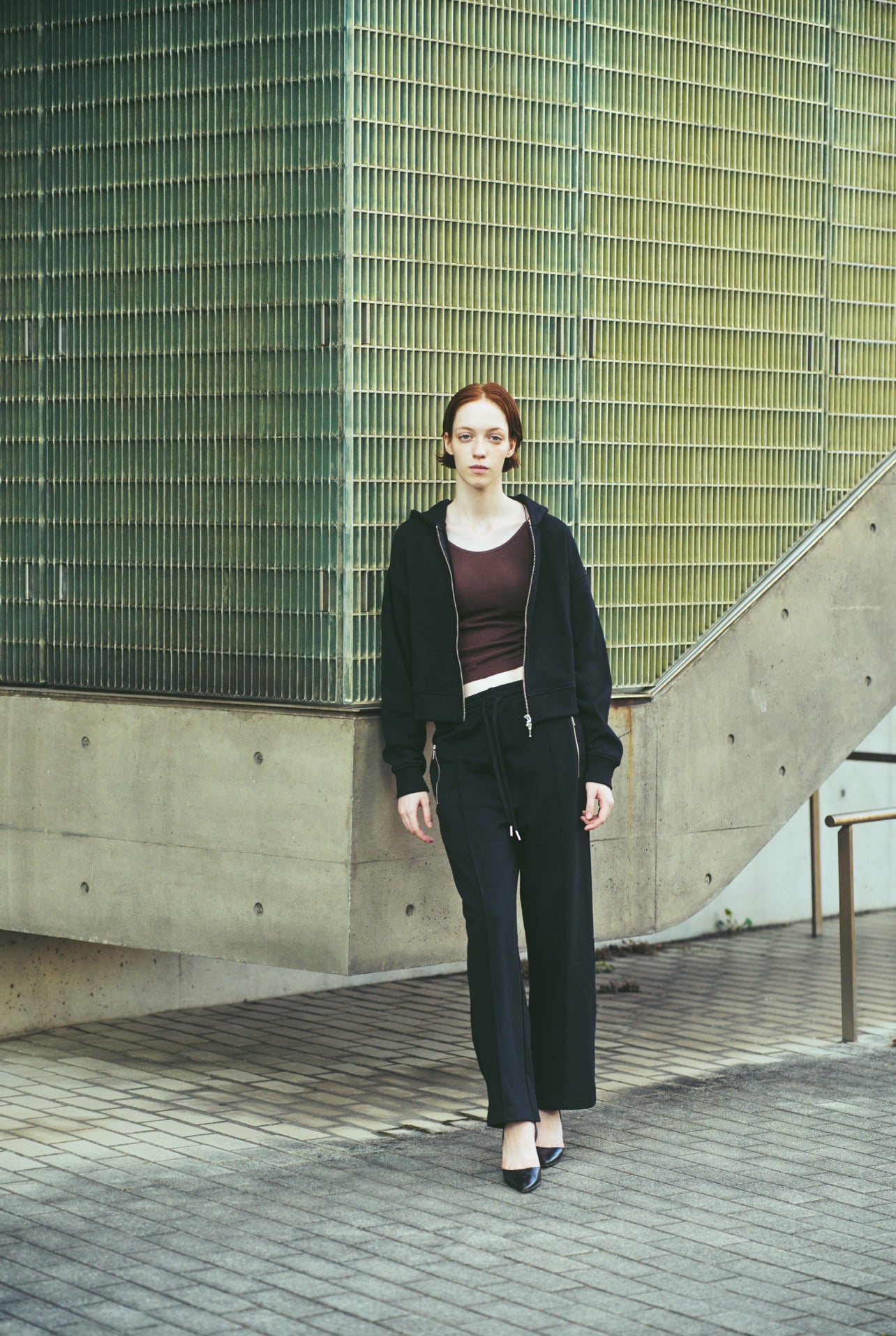 センタープレスの入った、スタイリッシュなシルエットのスウェットパンツ。スウェット生地でありながら、カジュアルな印象を与えすぎない様仕上げました。