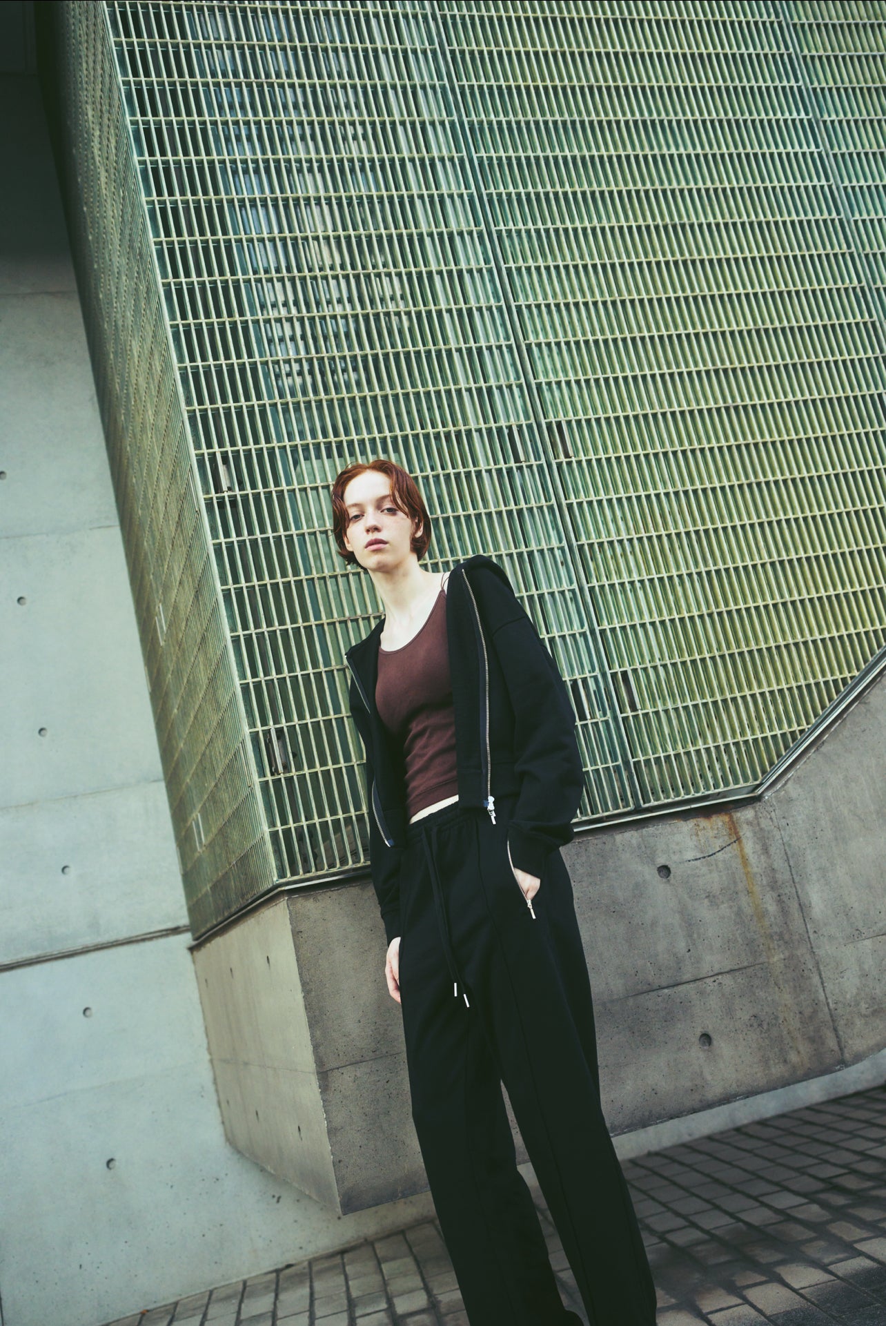 セットアップで制作しているZip Up Hoodieと同様のジップを、サイドのポケットに使用。艶を消したシルバージップがよりモダンな印象を与えます。